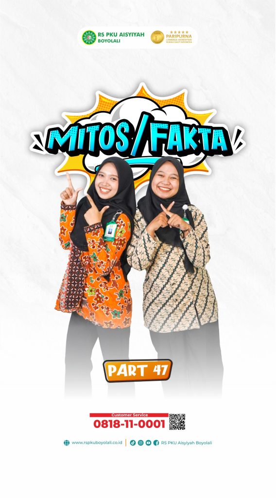 Assalamualaikum wr wb #sahabatpku 🙏 🧐 MITOS / FAKTA Part 47Masih banyak lho anggapan keliru soal kesehatan yang beredar di masyarakat!Kali ini, kita bahas topik menarik tentang apa aja yang sering bikin bingung 👇Boleh ngga sih konsumsi ini atau konsumsi itu ? 💬 Kira-kira, ini mitos atau fakta ya?Yuk, cari tahu jawabannya di episode kali ini bersama RS PKU Aisyiyah Boyolali 💚 RS PKU AISYIYAH BOYOLALIJl Pasar Sapi Sapi Baru Singkil Karanggeneng Kec Boyolali Jawa Tengah 57312☎ (0276)322898📱Pendaftaran : 085702385770📱Customer Service : 0818110001🌐 www.rspkuboyolali.co.idIG : @rspkuaisyiyah Melayani Dengan Ramah dan Sepenuh Hati Wassalamu’alaikum wr wb