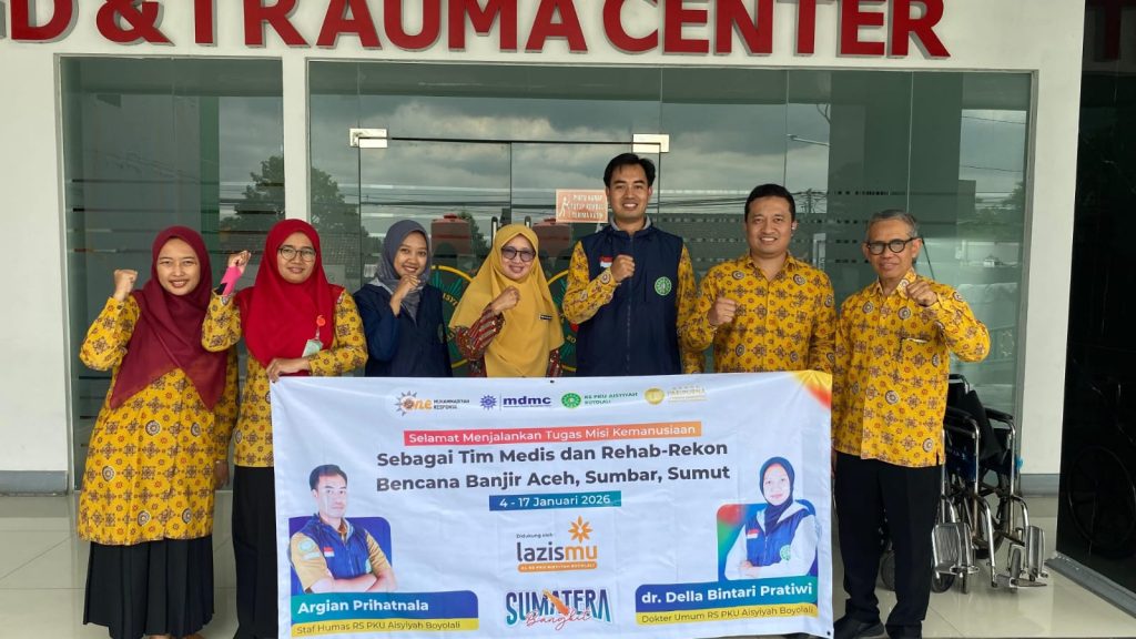 RS PKU Aisyiyah Boyolali Kirim Relawan Kesehatan ke Daerah Bencana Sumatra RS PKU Aisyiyah Boyolali melepas dua relawan kesehatan, dr. Della Bintari Pratiwi dan Argian Prihatnala, untuk bertugas di daerah terdampak banjir di Sumatra, Jumat (2/1/2026). Keduanya akan bergabung dalam satu Tim Kesehatan bersama RS PKU Muhammadiyah Gamping, Yogyakarta. Tim relawan dijadwalkan berangkat melalui Bandara Ahmad Yani Semarang pada Sabtu (3/1/2026) dan akan melaksanakan tugas kemanusiaan selama dua pekan, mulai 4 Januari hingga 17 Januari 2026, di wilayah Aceh, Sumatra Utara, dan Sumatra Barat. Direktur RS PKU Aisyiyah Boyolali, dr. Zahrosofi Ahmadah, MARS, dalam sambutan pelepasan relawan berpesan agar penugasan tersebut diniatkan sebagai ibadah. “Ibadah bukan hanya ritual seperti salat, puasa, atau haji. Ibadah memiliki makna yang luas, yakni seluruh aktivitas yang diwujudkan sebagai bentuk ketaatan total kepada Allah dalam seluruh aspek kehidupan,” ujarnya. Acara pelepasan relawan tersebut turut dihadiri Wakil Direktur Administrasi dan Keuangan, Drs. Thontowi Jauhari, SH, M.Si, serta Kepala Bidang Administrasi dan SDI (Sumber Daya Insani), Purwani, S.Kep., Ners., MARS. Menurut dr. Zahrosofi, membantu meringankan penderitaan para korban bencana merupakan bentuk ibadah kemanusiaan yang bernilai tinggi, bahkan dapat dimaknai sebagai jihad kemanusiaan. “Oleh karena itu, kami berharap dr. Della dan Mas Yayo menjalani tugas ini dengan penuh keikhlasan. Tanpa keikhlasan, pekerjaan berat akan terasa semakin berat. Dengan keikhlasan, pekerjaan seberat apapun akan menjadi ringan. Seberat apa pun tugas relawan, penderitaan korban bencana jauh lebih berat,” tuturnya. Ia juga berharap keberkahan dari pengabdian para relawan dapat mengalir kepada RS PKU Aisyiyah Boyolali sehingga rumah sakit ini semakin menjadi unggul dan berkemajuan. “Menjadi relawan kemanusiaan adalah bagian dari sikap takwa, yakni ketaatan kepada Allah. Manusia diperintahkan untuk saling menolong dan menebarkan kasih sayang. Orang-orang bertakwa dijanjikan kemudahan oleh Allah, baik di dunia maupun di akhirat,” pungkasnya. Sementara itu, dalam kata pamitannya, dr. Della Bintari Pratiwi menyampaikan apresiasi atas kepercayaan yang diberikan. “Bagi saya, ini adalah panggilan profesi. Saya telah lama menginginkan menjadi relawan kesehatan di daerah bencana untuk mengamalkan ilmu kedokteran yang saya miliki. Ketika ditawari untuk berangkat ke Sumatra, saya langsung mengiyakan tanpa berpikir panjang,” ujarnya. Saat ditanya mengenai beratnya tugas sebagai relawan kesehatan di daerah bencana, dr. Della menjawab singkat, “Itu justru tantangan. Saya menyukai tantangan.” MDMC Kerahkan Relawan Muhammadiyah melalui Lembaga Resiliensi Bencana (LRB) atau Muhammadiyah Disaster Management Center (MDMC) Pimpinan Pusat Muhammadiyah mengerahkan ratusan relawan untuk memberikan layanan darurat bagi para penyintas banjir dan longsor di Aceh, Sumatra Utara (Sumut), dan Sumatra Barat (Sumbar). Bencana tersebut dipicu hujan ekstrem akibat Siklon Seyar yang terjadi sejak 25 November 2025, sehingga menyebabkan kerusakan luas serta korban jiwa. MDMC telah mengirimkan tim asistensi tanggap darurat dan mengoordinasikan pengerahan tim-tim profesional dari regional Sumatra dan wilayah Jawa, termasuk Tim Kesehatan, sesuai kebutuhan daerah terdampak. Menurut Purwani, yang juga merupakan anggota Tim Kesehatan Emergency Medical Team (EMT) PP Muhammadiyah, seluruh Rumah Sakit Muhammadiyah dan Aisyiyah (RSMA) di Indonesia dikerahkan untuk mengirimkan tim medis. “Pada prinsipnya, setiap RSMA diminta mengirimkan satu tim. Namun karena keterbatasan personel, RS PKU Aisyiyah Boyolali mengirim dua relawan yang bergabung dengan RS PKU Muhammadiyah Gamping, Yogyakarta,” jelasnya. Ia menambahkan, pada 3 Januari 2026 terdapat tiga tim yang diberangkatkan, yakni dari RS PKU Muhammadiyah UMM (Universitas Muhammadiyah Malang), RSU Muhammadiyah Siti Aminah Bumiayu, Brebes dan Tim gabungan dari RS PKU Aisyiyah Boyolali dan RSMuhammadiyah Gamping Yogyakarta. Pengiriman tim medis dari RSMA dijadwalkan secara bergilir hingga Februari 2026.